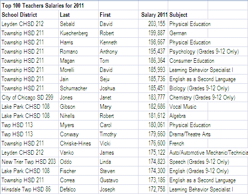 As Illinois citizens struggle with the severe economic downturn plaguing the state, [the state's] public school employees enjoy another record year of salaries, fringe benefits and pensions.